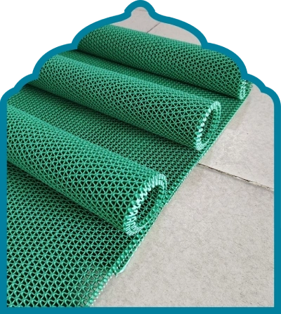 Mosque Carpets offers various types of wudu area mats, such as ablution rubber mats, PVC drainage mats, anti-fatigue wudu mats, and absorbent ablution mosque mats. The designs can be used in the entrances of mosques, ablution rooms, and corridors where water usually disperses.